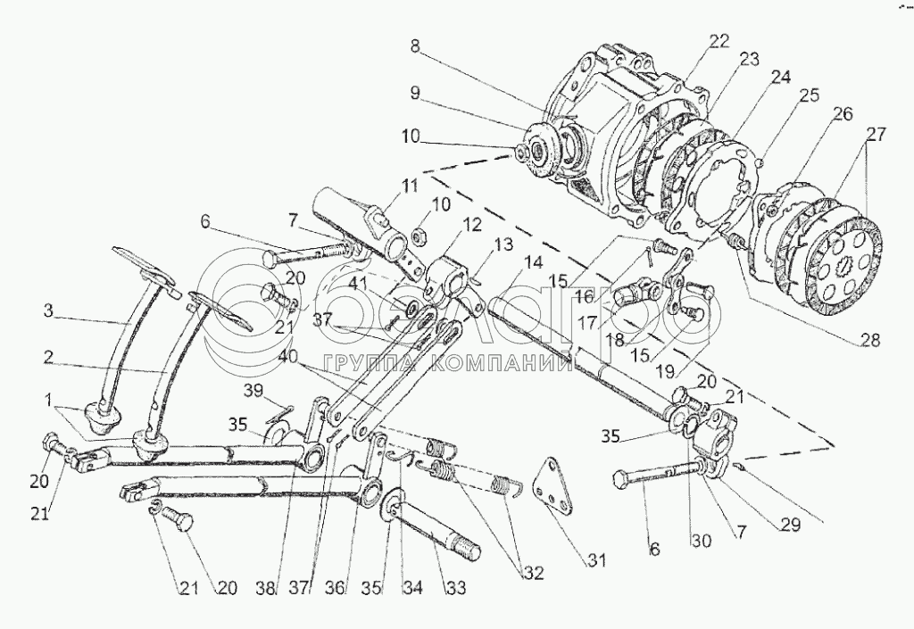 Каталог запасных частей к технике: МТЗ Беларус-422.1. Тормоза. Управление тормозами