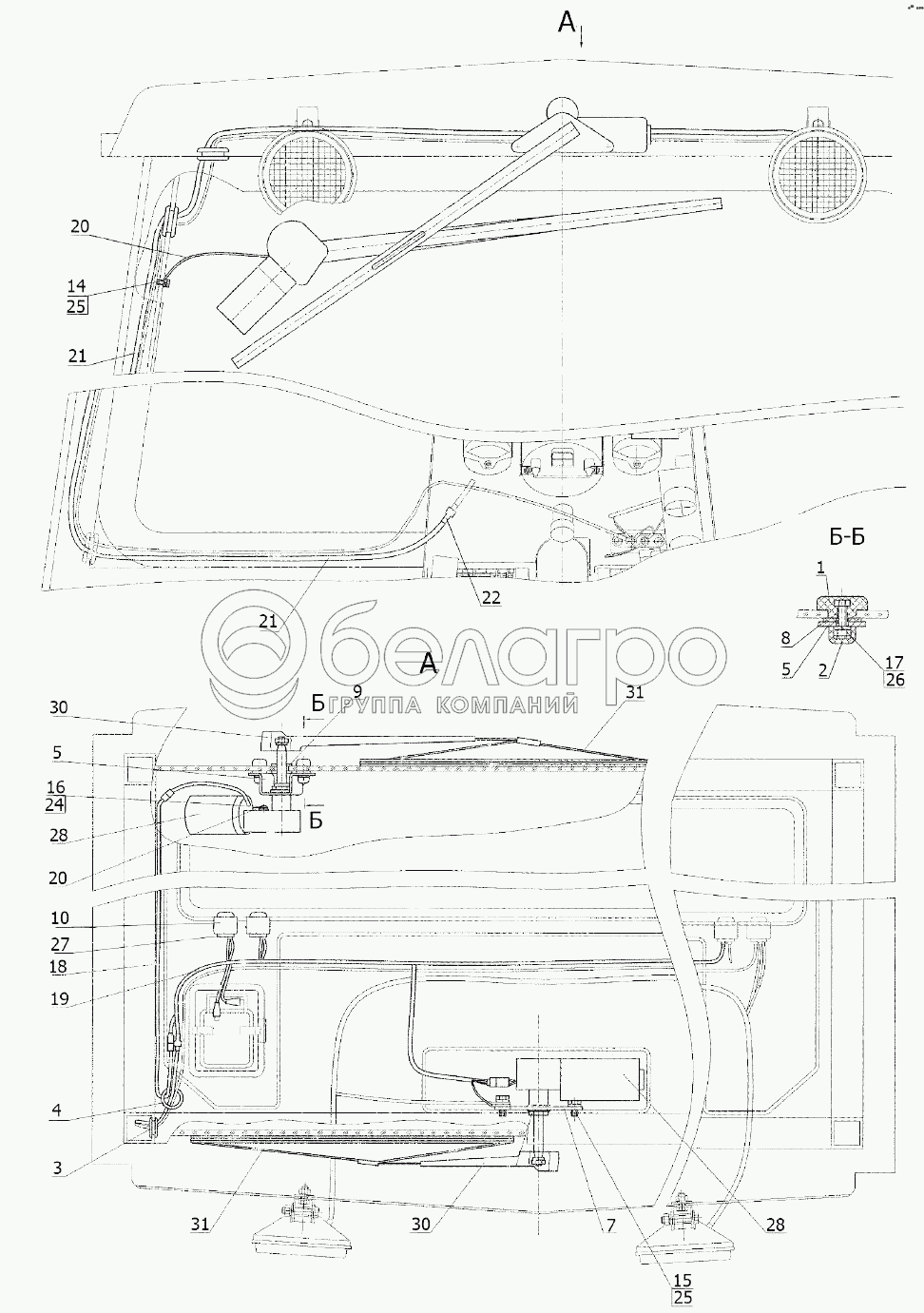 Каталог запасных частей к технике: МТЗ Беларус-422.1. Установка стеклоочистителей
