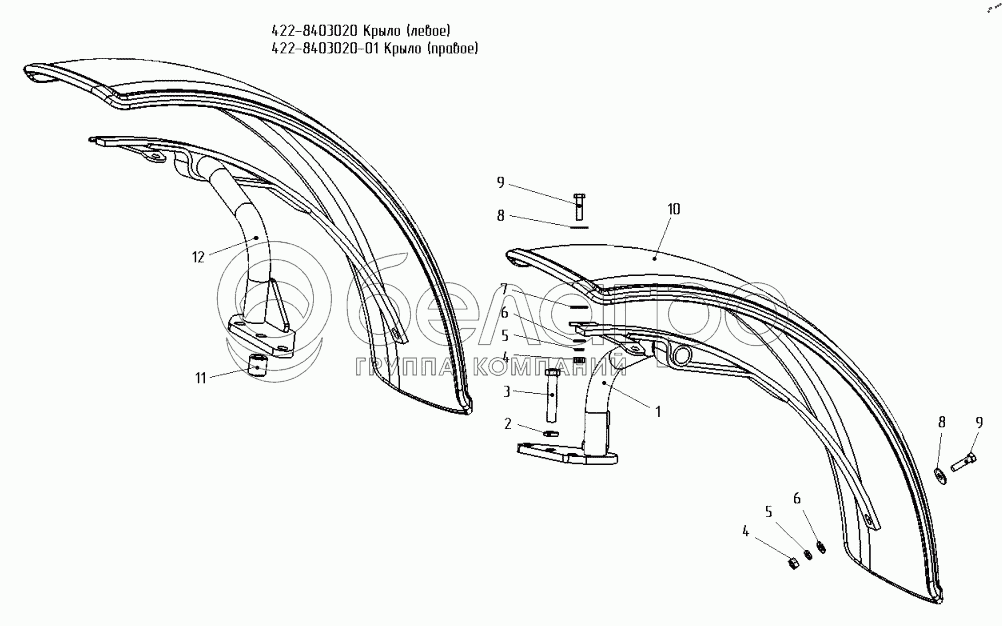 Каталог запасных частей к технике: МТЗ БЕЛАРУС 651. Крылья передних колес 422-8403020