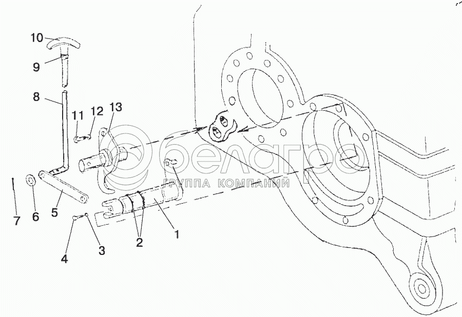 | 100х-2401020-01 Валик МТЗ механизма переключения ВОМ с поводком |