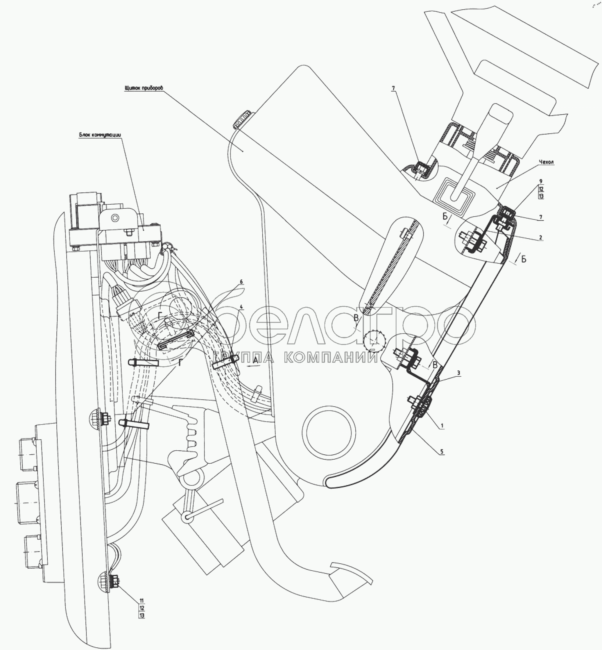 Каталог запасных частей к технике: МТЗ БЕЛАРУС 923.7. Установка щитка приборов 925М-3805105