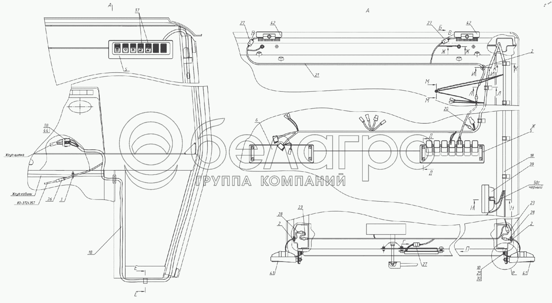 Каталог запасных частей к технике: МТЗ БЕЛАРУС 952.7. Электрооборудование крыши 1221.6Е-3700110