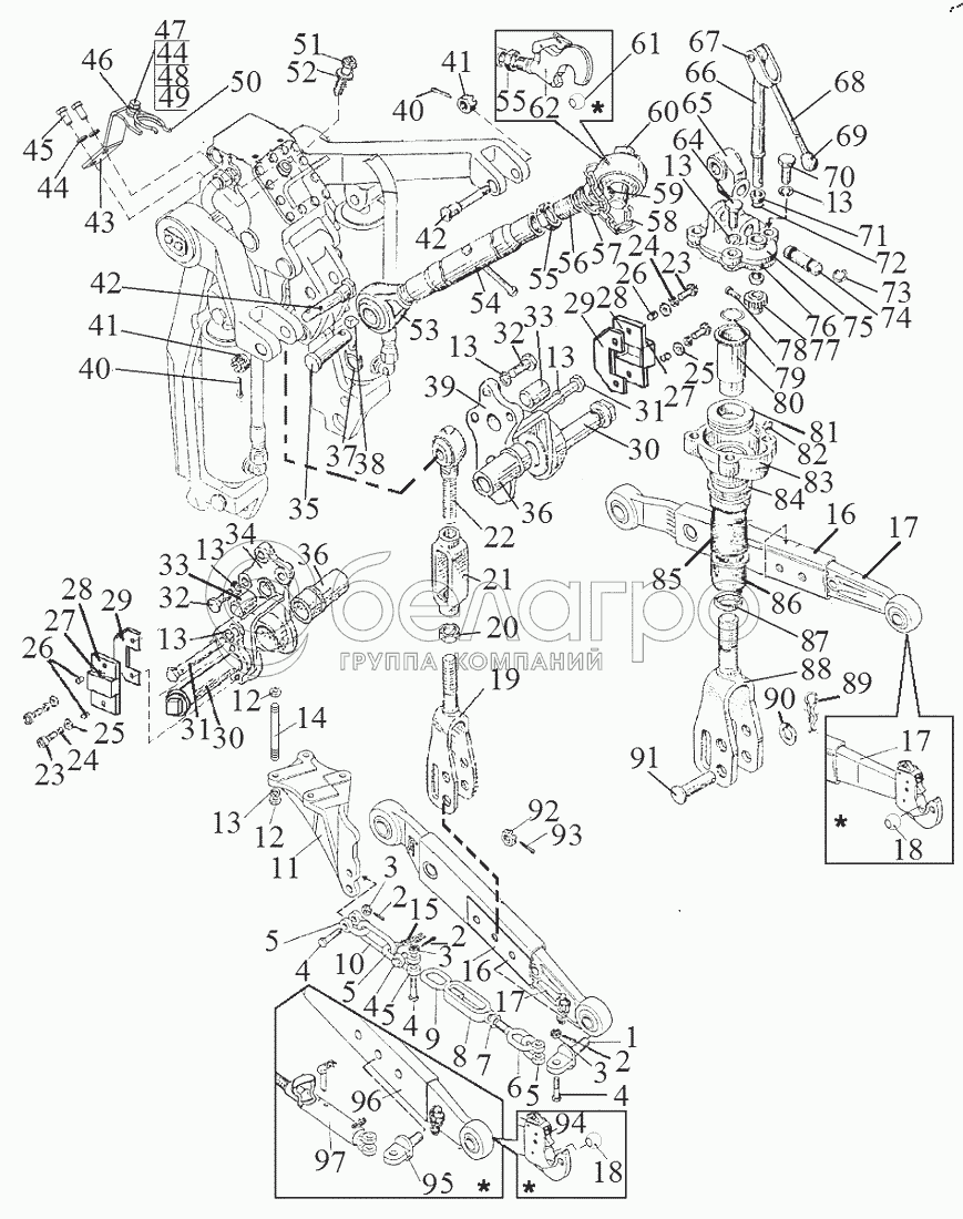 Каталог запасных частей к технике: МТЗ БЕЛАРУС 952.7. Механизм задней навески (с гидроподъемником)