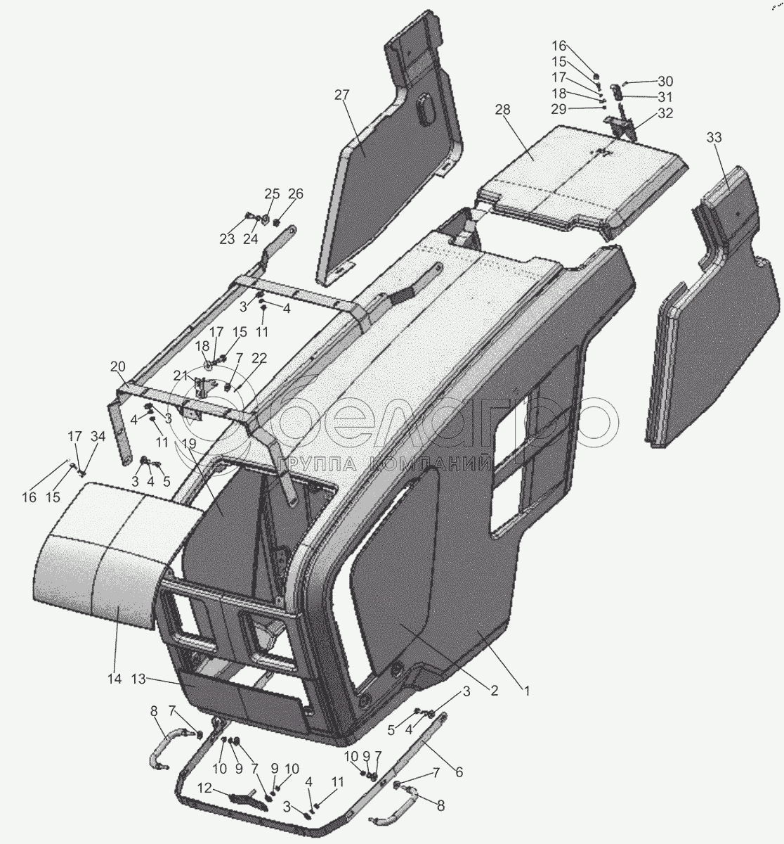 Каталог запасных частей к технике: МТЗ БЕЛАРУС 952.7. Облицовка радиатора. Капот