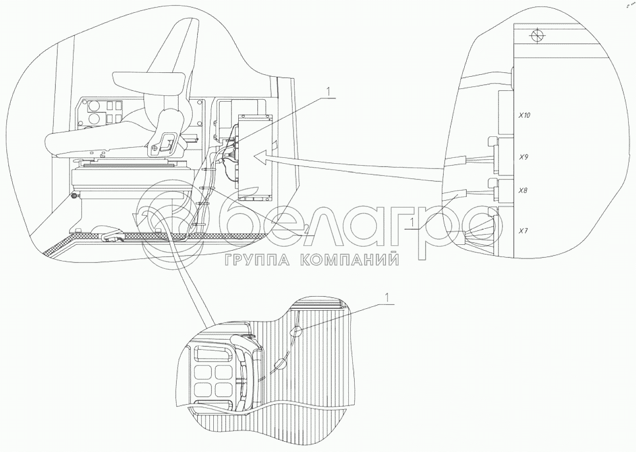 Каталог запасных частей к технике: МТЗ БЕЛАРУС 952.7. Подключение сиденья 1025.6-8700075