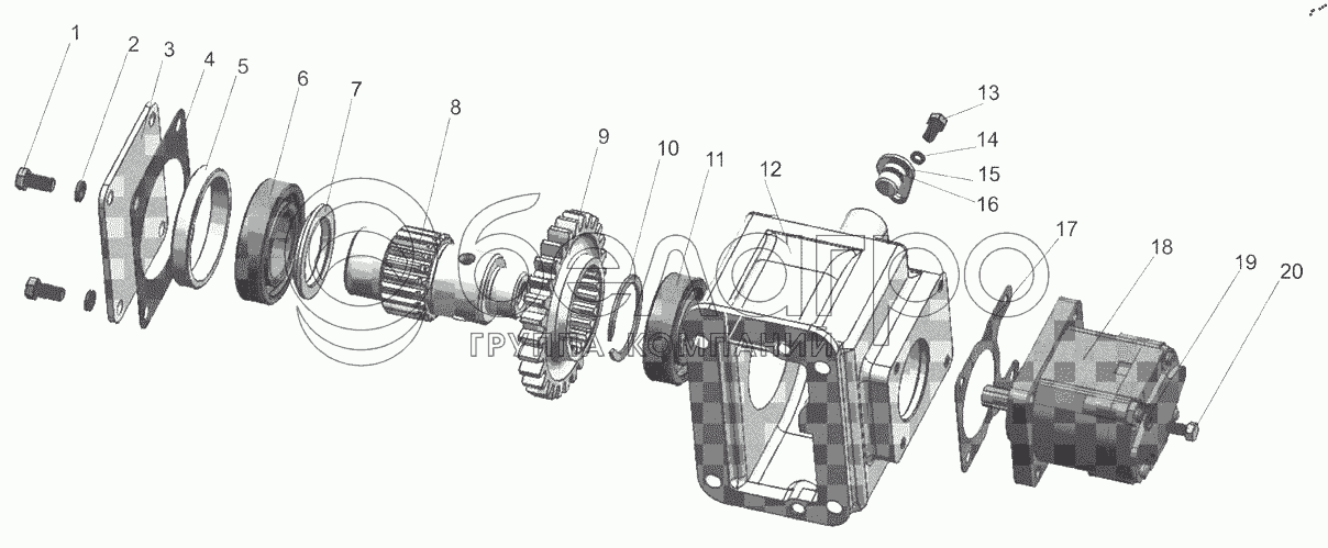 Каталог запасных частей к технике: МТЗ БЕЛАРУС 952.7. Привод насосов 77-4604010-01