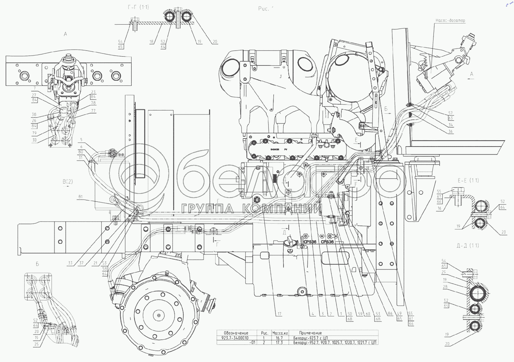 Каталог запасных частей к технике: МТЗ БЕЛАРУС 952.7. Управление рулевое 923.7-3400010-01
