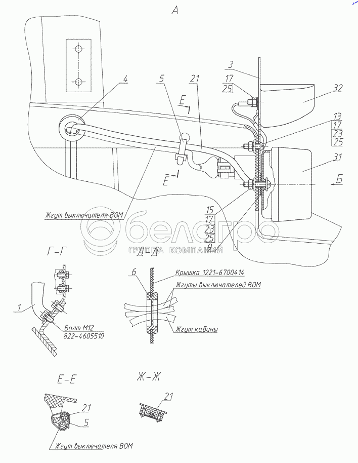 Каталог запасных частей к технике: МТЗ БЕЛАРУС 952.7. Установка фонарей задних 920.6-3700060