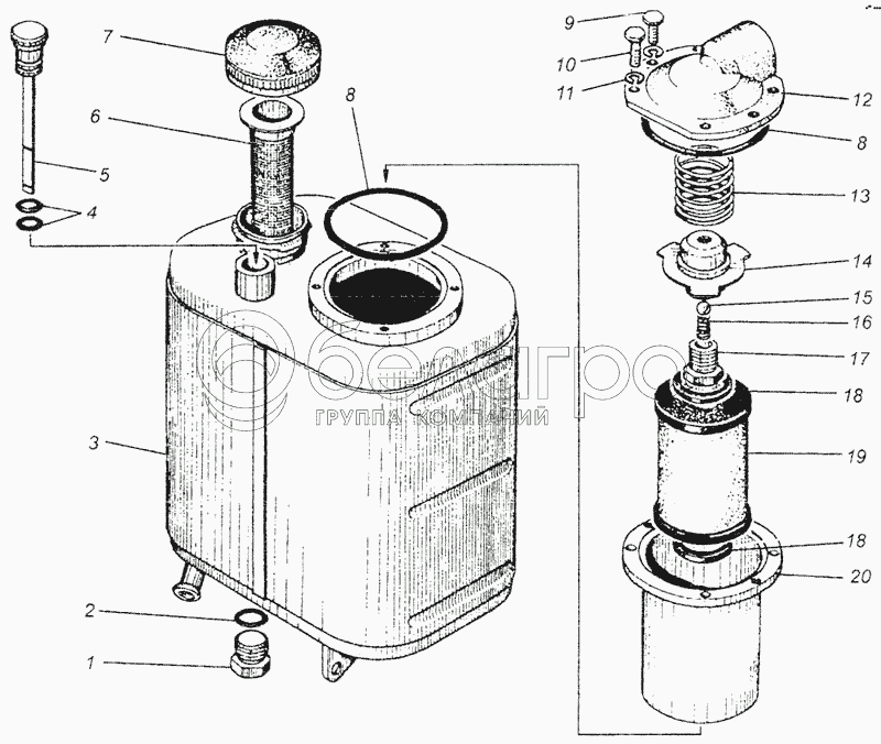 Каталог запасных частей к технике: МТЗ-082. Бак гидросистемы 082-4608