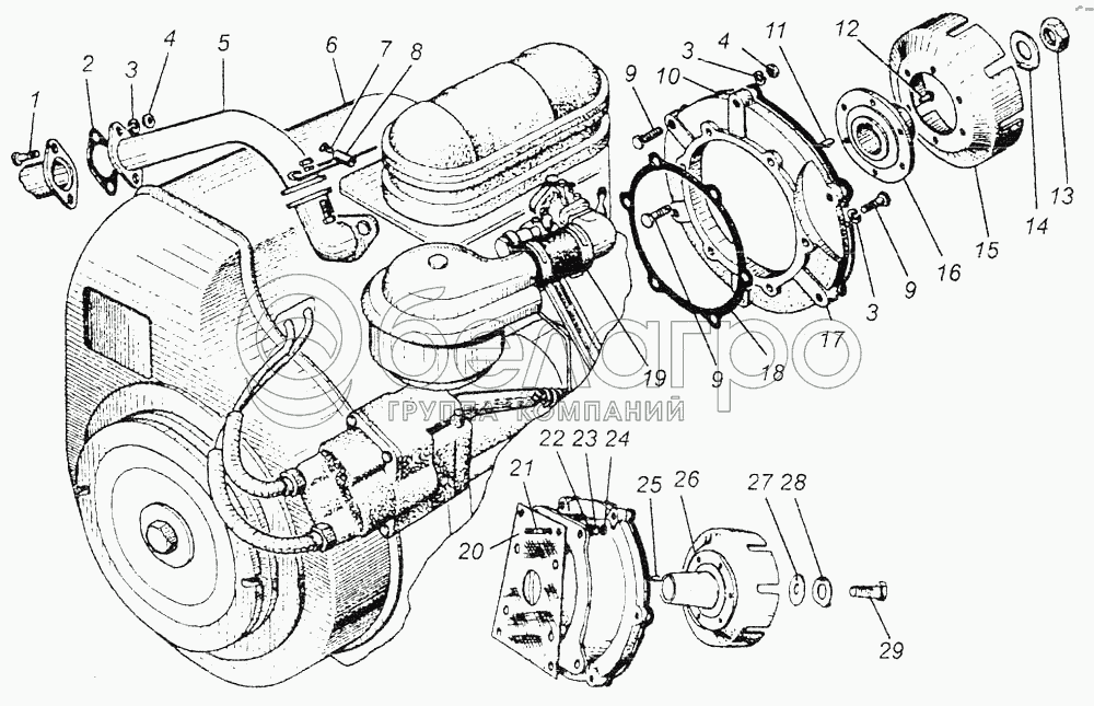 Каталог запасных частей к технике: МТЗ-082. Двигатель (установка) 082-1001