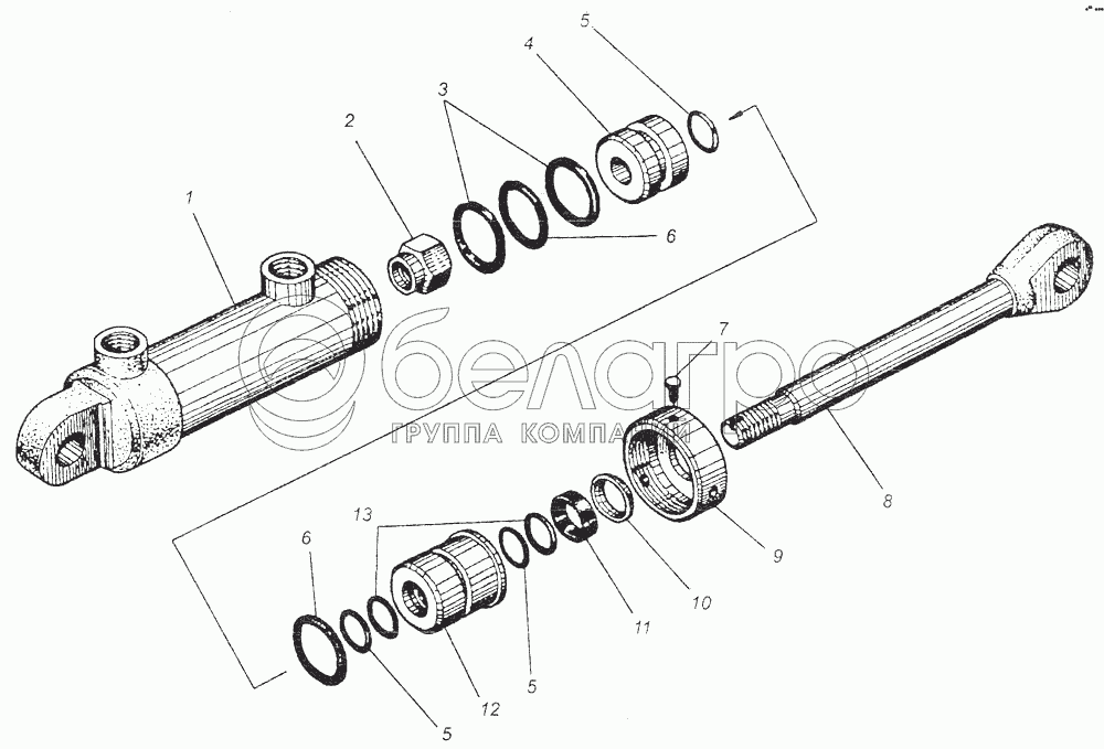 Каталог запасных частей к технике: МТЗ-082. Гидроцилиндр Ц40х70.010