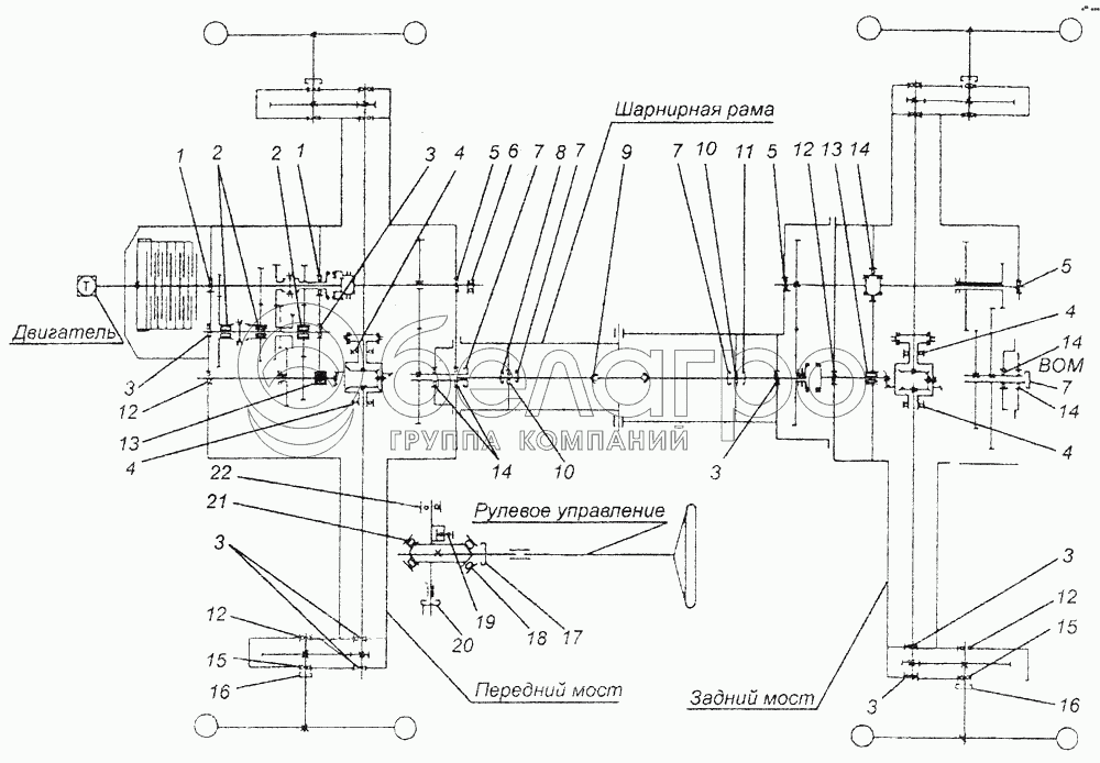 Каталог запасных частей к технике: МТЗ-082. Схема расположения подшипников и манжет