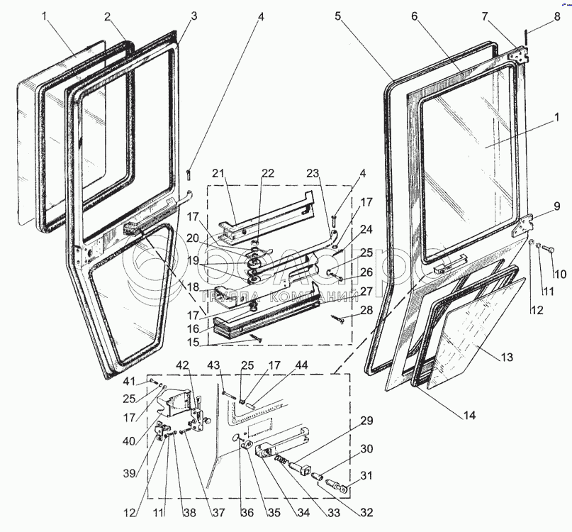 Каталог запасных частей к технике: МТЗ-1005. Двери кабины