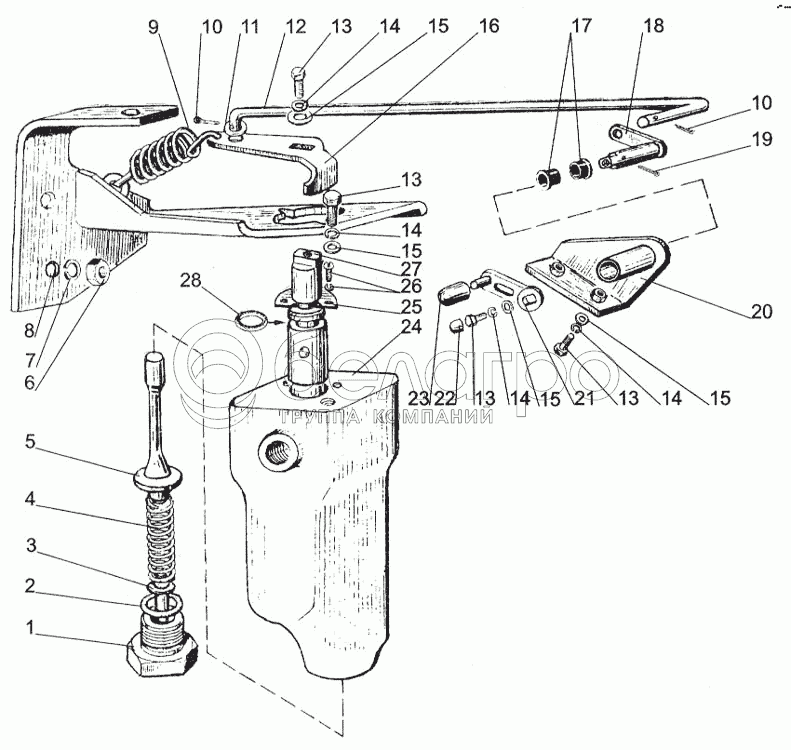 Каталог запасных частей к технике: МТЗ-1005. Кран блокировки. Управление блокировкой дифференциала