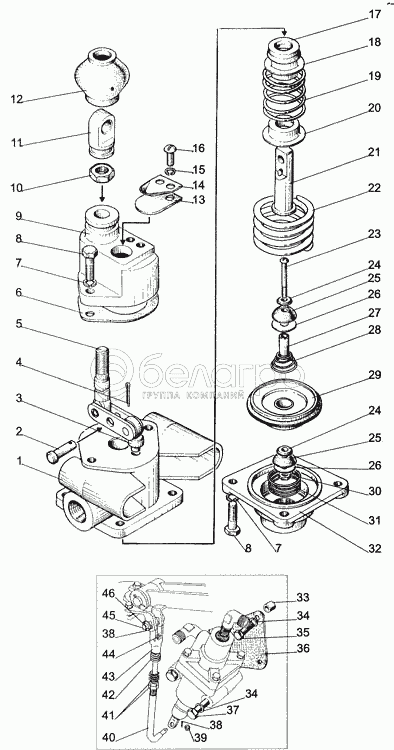 Каталог запасных частей к технике: МТЗ-1005. Кран тормозной