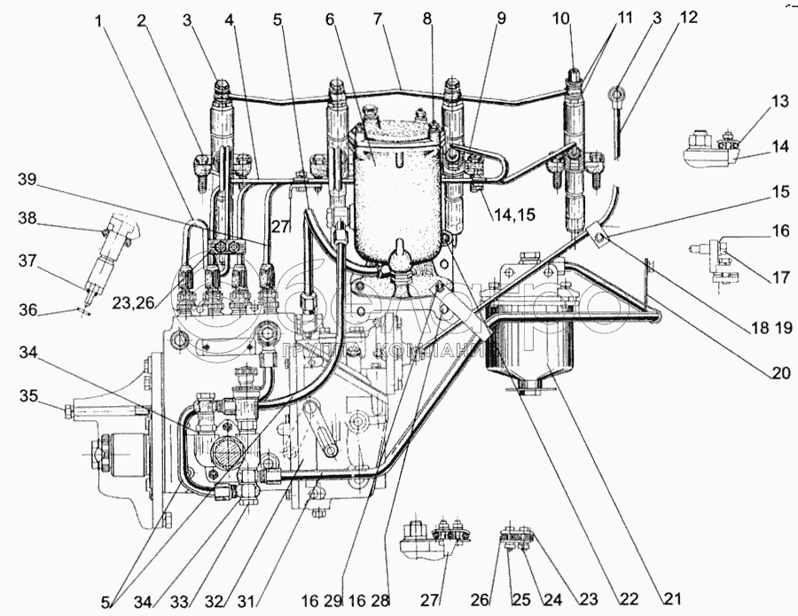 Каталог запасных частей к технике: МТЗ-1005. Топливные трубопроводы. Установка топливной аппаратуры