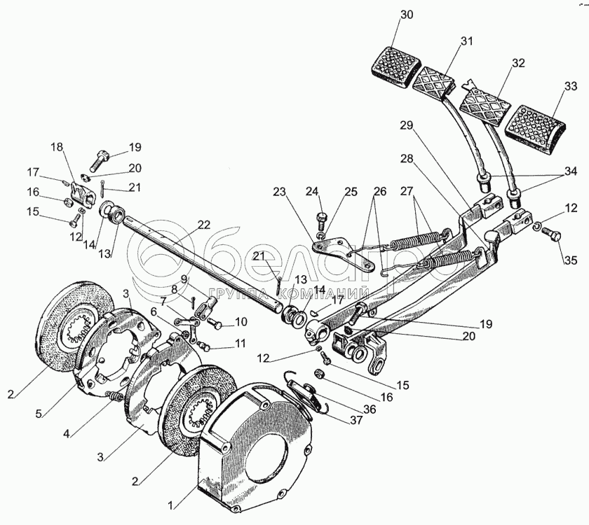 Каталог запасных частей к технике: МТЗ-1005. Тормоза. Управление тормозами