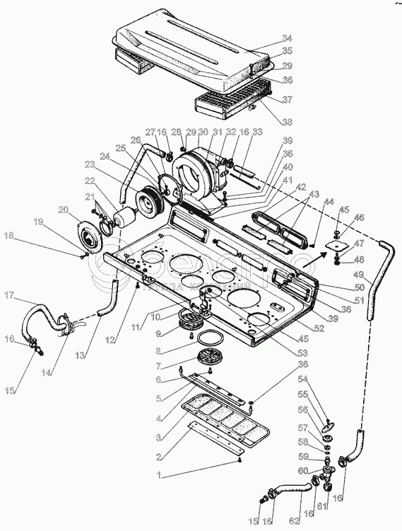 Каталог запасных частей к технике: МТЗ-1005. Установка отопителя