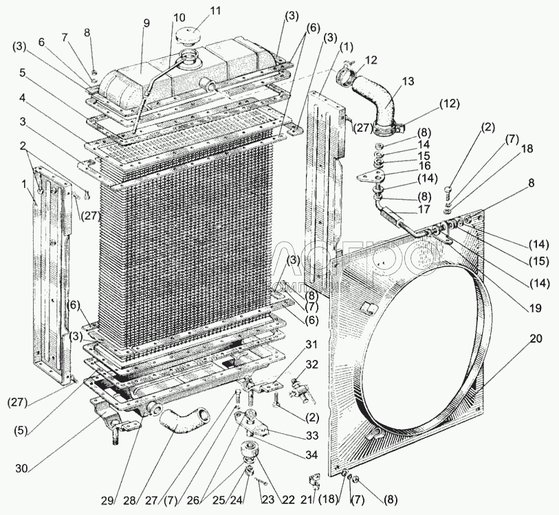 Каталог запасных частей к технике: МТЗ-1005. Водяной радиатор