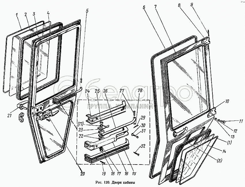 Каталог запасных частей к технике: МТЗ-100. Двери кабины