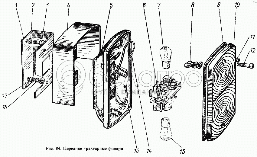 Каталог запасных частей к технике: МТЗ-100. Фонари тракторные передние