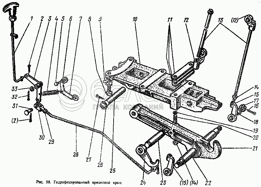 Каталог запасных частей к технике: МТЗ-100. Гидрофицированный прицепной крюк