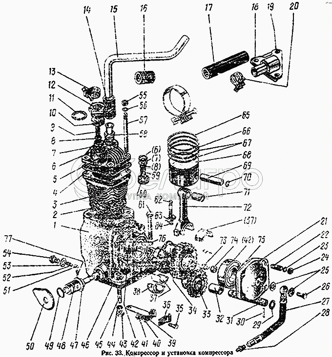 Каталог запасных частей к технике: МТЗ-100. Компрессор и установка компрессора