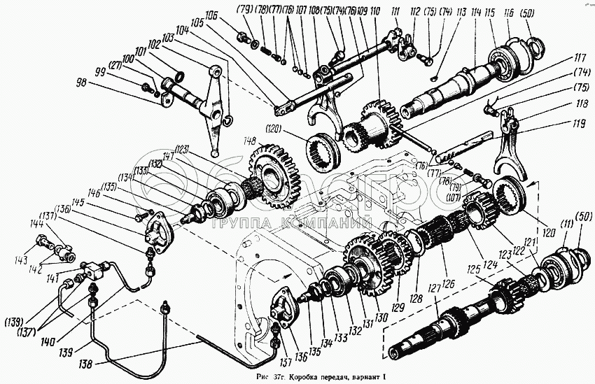 Каталог запасных частей к технике: МТЗ-100. Коробка передач (вариант 1)