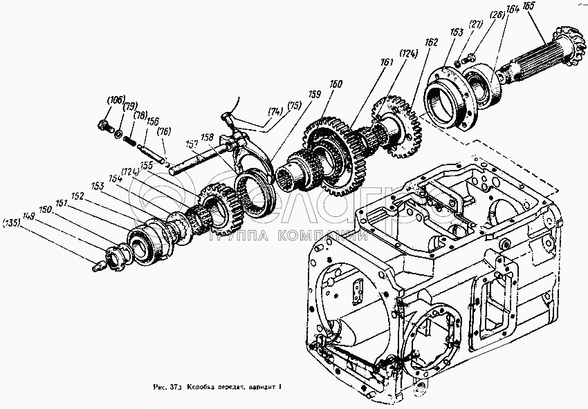 Каталог запасных частей к технике: МТЗ-100. Коробка передач (вариант 1)