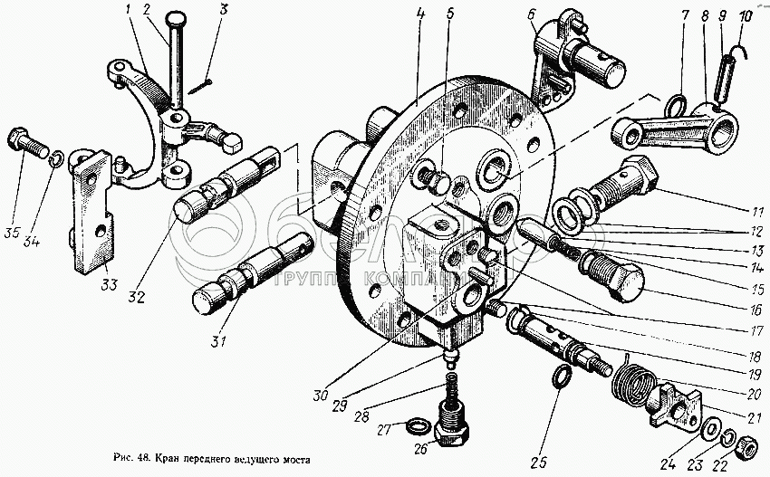 Каталог запасных частей к технике: МТЗ-100. Кран переднего ведущего моста