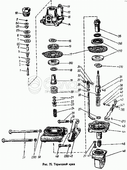 Каталог запасных частей к технике: МТЗ-100. Кран тормозной