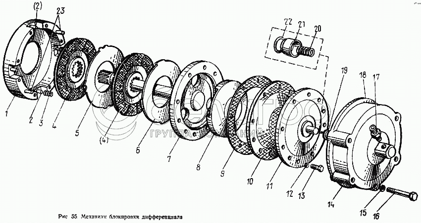 Каталог запасных частей к технике: МТЗ-100. Механизм блокировки дифференциала