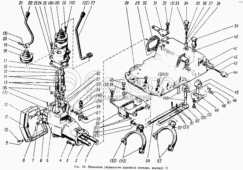 Каталог запасных частей к технике: МТЗ-100. Механизм управления коробкой передач (вариант 2)
