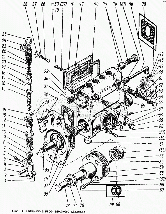 Каталог запасных частей к технике: МТЗ-100. Насос топливный высокого давления
