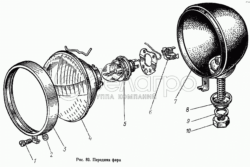 Каталог запасных частей к технике: МТЗ-100. Передняя фара