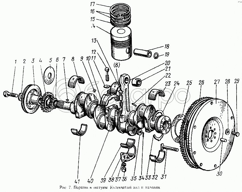 Каталог запасных частей к технике: МТЗ-100. Поршни и шатуны. Коленчатый вал и маховик