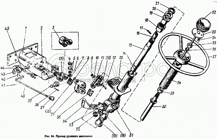 Каталог запасных частей к технике: МТЗ-100. Привод рулевого механизма
