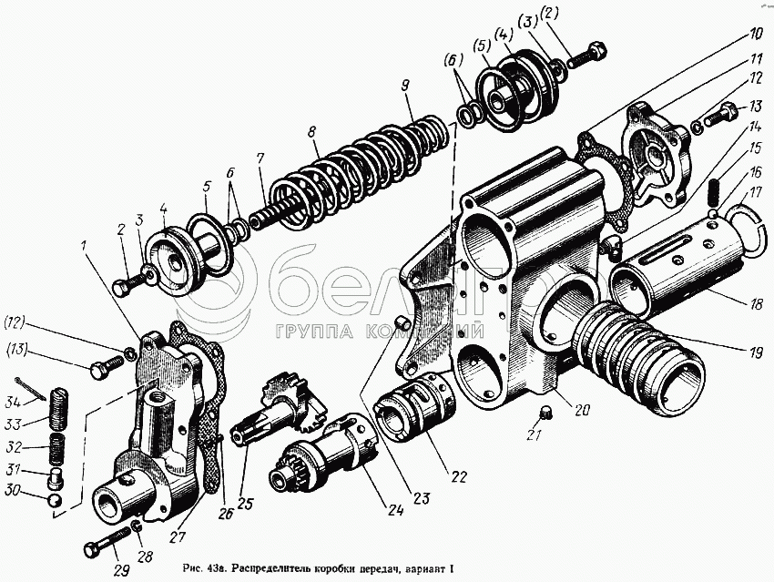 Каталог запасных частей к технике: МТЗ-100. Распределитель коробки передач (вариант 1)