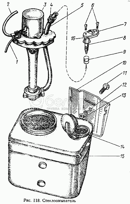 Каталог запасных частей к технике: МТЗ-100. Стеклоомыватель