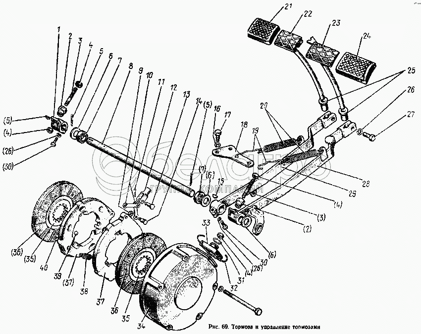 Каталог запасных частей к технике: МТЗ-100. Тормоза и управление тормозами