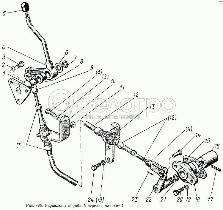Каталог запасных частей к технике: МТЗ-100. Управление коробкой передач (вариант 1)