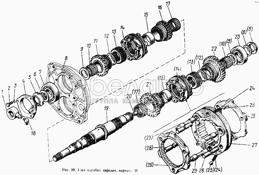 Каталог запасных частей к технике: МТЗ-100. Узел передач коробки передач (вариант 2)