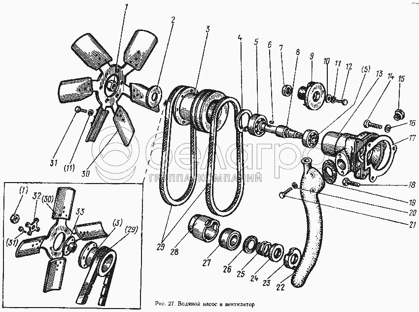 Каталог запасных частей к технике: МТЗ-100. Водяной насос и вентилятор