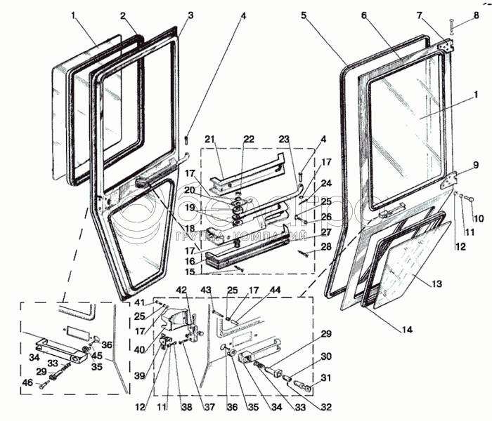 Каталог запасных частей к технике: МТЗ-1021.3. Двери кабины