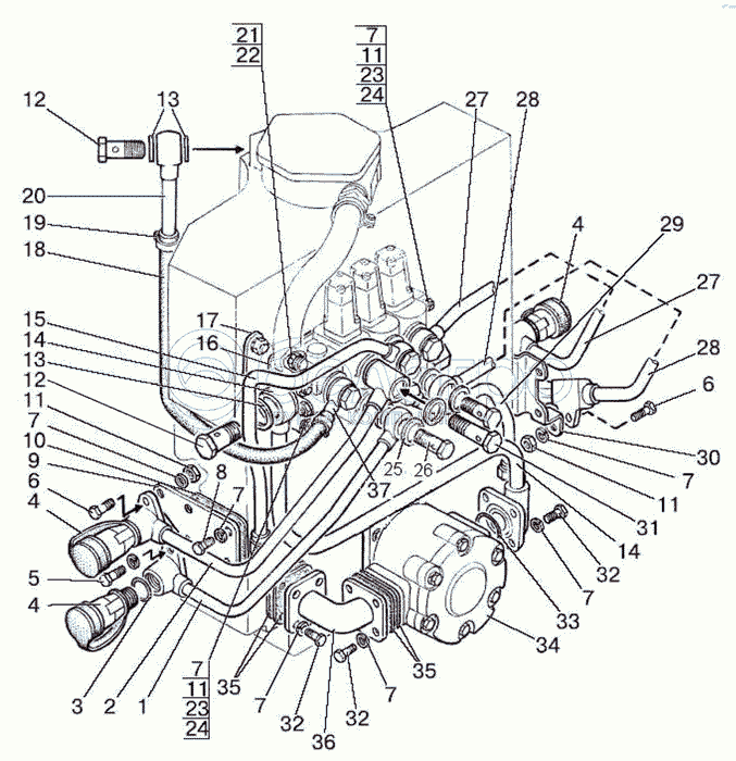 Каталог запасных частей к технике: МТЗ-1021.3. Корпус гидросистемы 1021-4600015