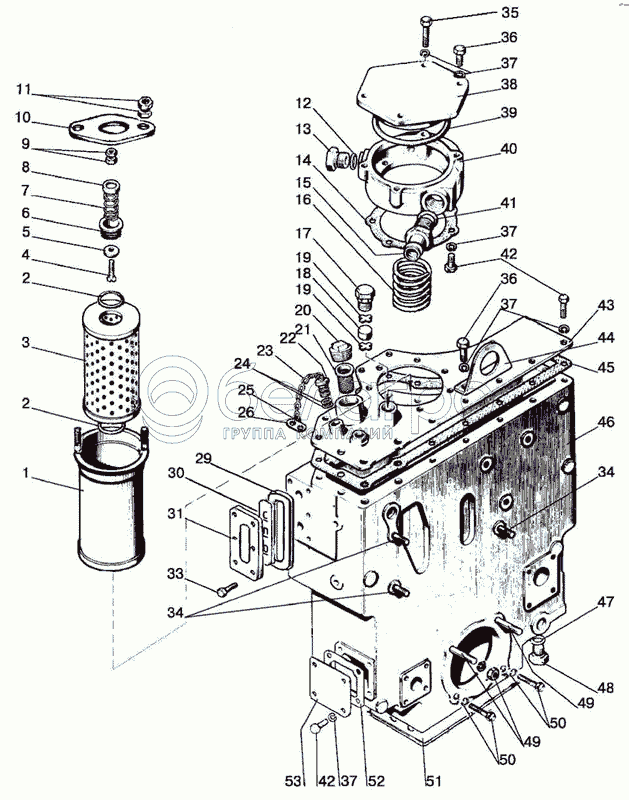 Каталог запасных частей к технике: МТЗ-1021.3. Корпус гидросистемы и фильтр