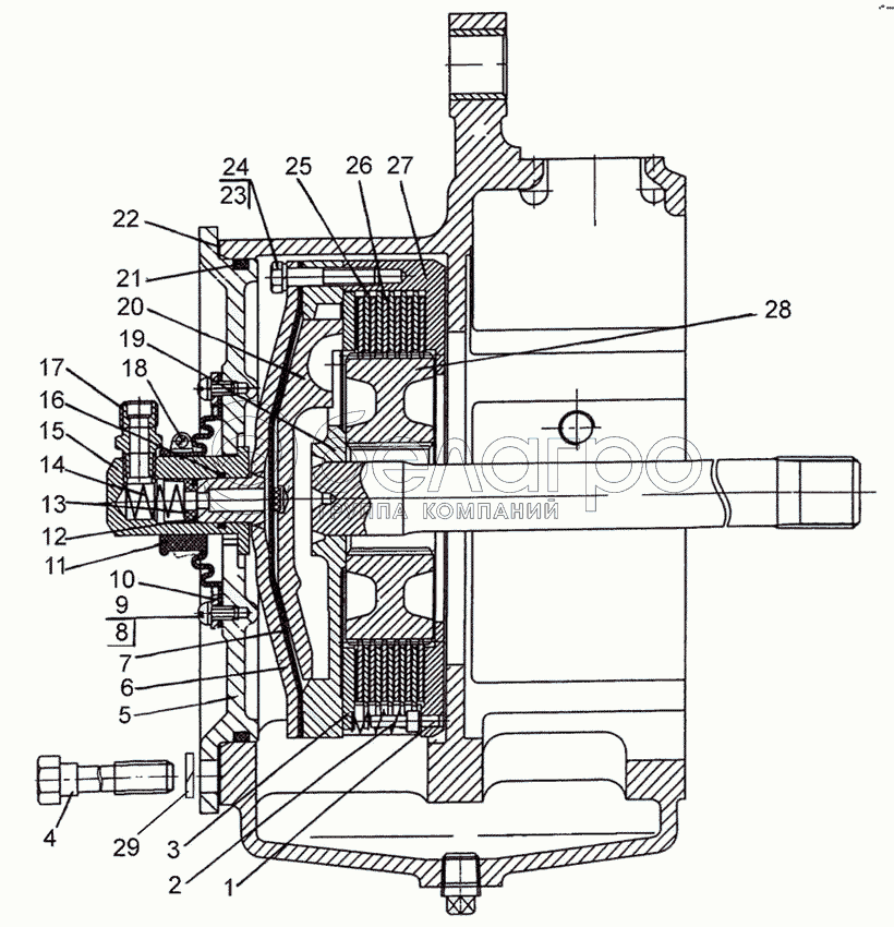 Каталог запасных частей к технике: МТЗ-1021.3. Механизм блокировки дифференциала «мокрого» типа
