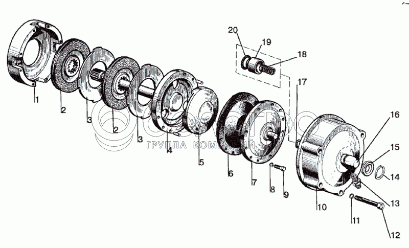 Каталог запасных частей к технике: МТЗ-1021.3. Механизм блокировки дифференциала «сухого» типа