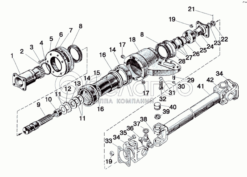 | 72-2203010-А2 Вал карданный МТЗ-82 переднего моста (4 отверстия) L=626 мм SPILE |