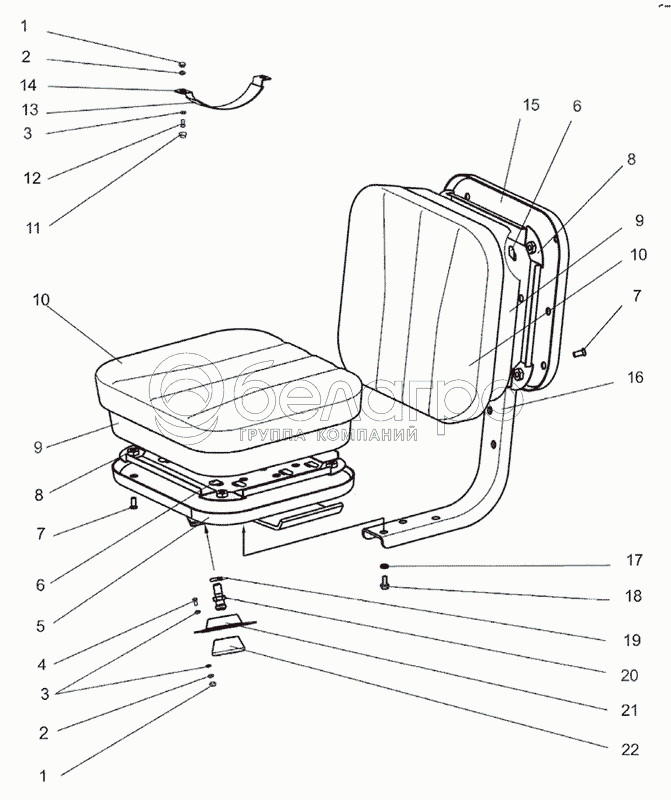 Каталог запасных частей к технике: МТЗ-1021.3. Сиденье дополнительное